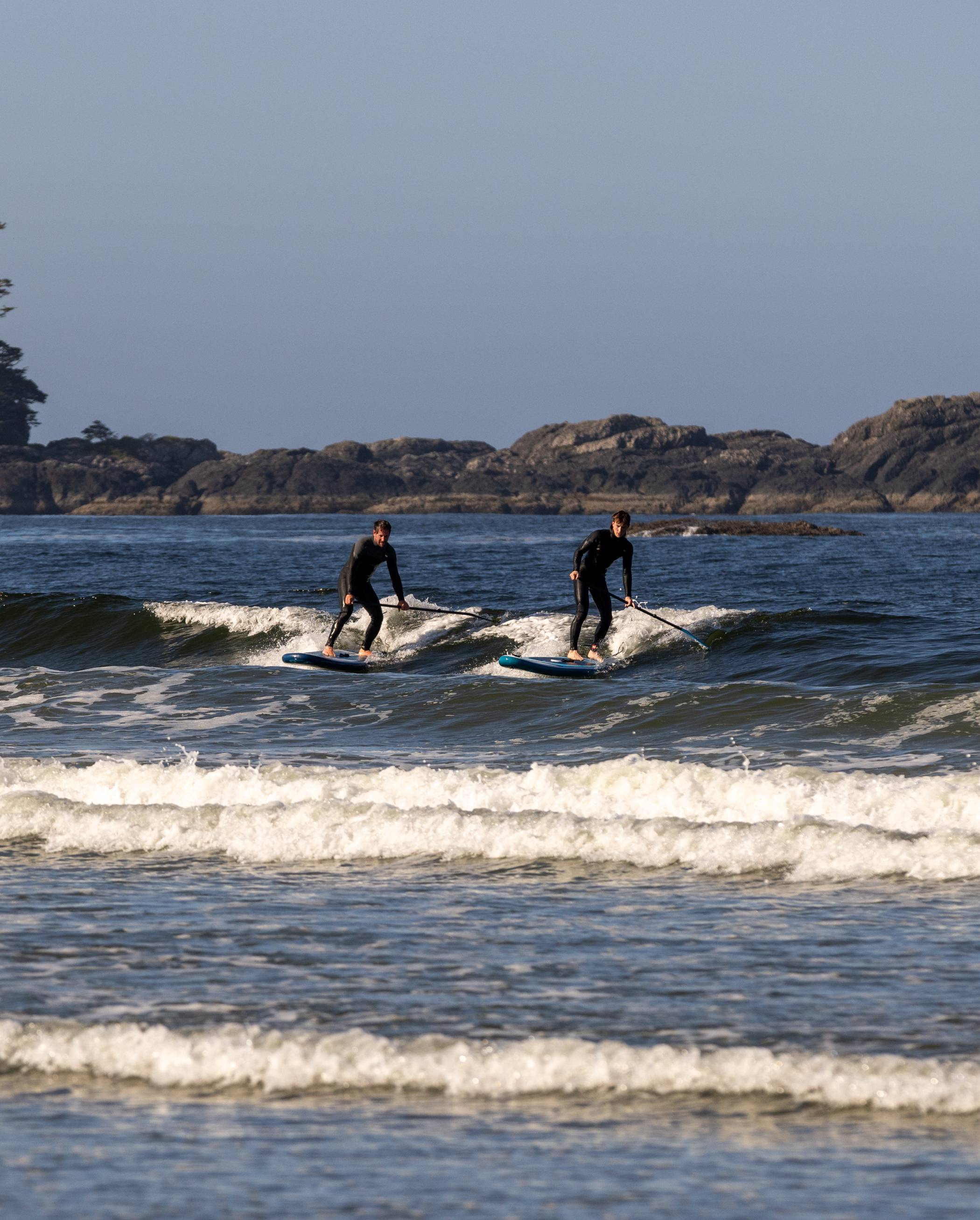 Ucluelet welcomed us with its laid-back charm and rugged coastline. While the Pacific swells make this area a haven for surfers, we found plenty of calmer spots for paddleboarding and freediving. Chesterman Beach and Cox Bay were the ultimate spots to catch the waves. We got up before dawn to make the most of the early morning sets, catching wave after wave as the sun slowly burned off the mist revealing rocky islands and tree lined bays. Once the surf session was over everyone donned their Pro Change Robes to warm up and set up a barbecue on the sand, enjoying the waterfront long into the afternoon.